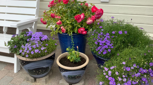 Большинство из них мы приобретали в садовых центрах или мастерили сами из дерева, а есть и такие, которые достались по наследству от родителей моего мужа. Но речь пойдет всего лишь о двух серых контейнерах, которые живут в саду уже более 18 лет. В то далекое время в наших садовых центрах не было такого широкого выбора контейнеров, какой можно найти сейчас, а мне были нужны достаточно объемные для посадки роз...