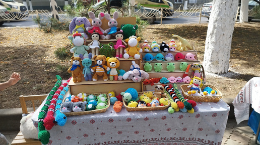 В 2025 году день Вязания на Публике выпал на 14 июня- вторую субботу июня. Я живу в небольшом южном городе, с населением около 75.000 жителей. Наш городской дом культуры впервые организовал Фестиваль Вязания, приурочив к Празднику Вязания на Публике. На Фестивале было более 40 мастериц из нашего города и ближайших районов. Все вязальщицы. Были представлены вязаные игрушки, вязаные носочки, пледы, сумки, одежда, декор, шали, скатерти, салфетки, декор. Вообщем все что можно представить и связать - было представлено на городской площади возле Дома Культуры нашего города...