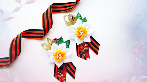 09:311,0×00:00/09:31Красивая брошь на 9 мая. Брошь с цветком. Брошь из лент. Брошь из георгиевской ленты. Нарцисс.3 года назад
