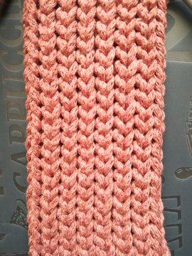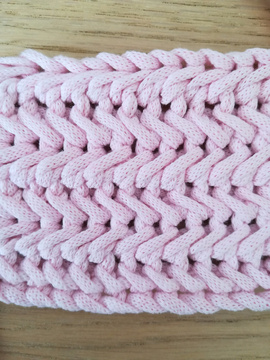 Проставляем маркер от начала ряда. Вяжем резинку 1/1 4 ряда. После этого провязываем 4 ряда обычными лицевыми петлями.