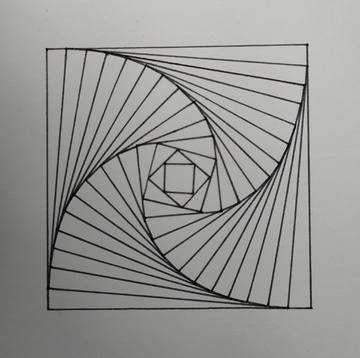 Всем Привет! На связи канал «Навык за неделю». Сегодня обсудим пошаговое рисование двух фигур (квадрата и треугольника), которые закручиваются. В статье представлены одновременно этапы построения обеих фигур в виде небольших галерей. Приступаем: В любом случае нам потребуется квадратный лист плотной бумаги. Моя взята из альбома для черчения. Сами квадраты имеют размеры 10 х 10 см. Когда все линии прочерчены и немного подсохли, то можно убрать карандашную разметку обычным ластиком. Линер не стирается...