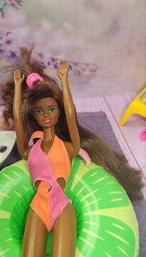 Здравствуйте, друзья и гости канала! Моя вторая статья была о кукле барби Barbie Twinkle Lights, о красавице на молде Суперстар. Мне она досталась нюдом, но я уже тогда хотела для неë найти родное платье. И вот спустя почти 4 года платье нашлось. Хочу похвастаться вам и показать как же куколка прекрасна в нëм! Напомню, что на груди имеются жгутики, которые светятся и на животике есть рычажок, его крутишь и цвет меняется. И в родном платье есть небольшое отверстие как раз для рычага/цветочка. Платье пышное, верхний слой из фатина, на нем блëстки и вот белые кругляшки, они в темноте светятся...