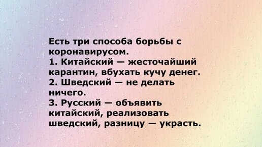 02:191,0×00:00/02:19Есть три способа борьбы с коронавирусов. 1. Китайский - жесточайший карантин, вбухать кучу денег.. Анекдоты4 года назад