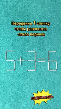 Привет, всем любителям головоломок. Справитесь с новой головоломкой? Передвинь только 1 спичку чтобы равенство стало верным. Подпишись на канал, жду вас снова. 😊