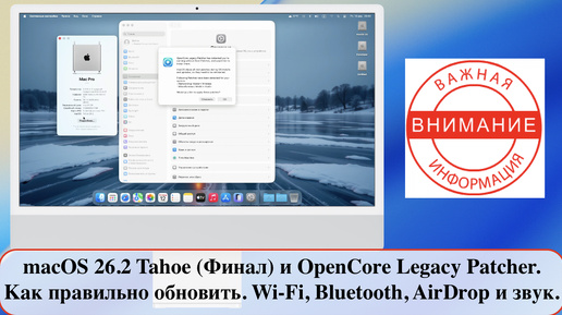 16:001,0×00:00/16:00macOS 26.2 Tahoe (Финал) и OpenCore Legacy Patcher. Как правильно обновить. Wi-Fi, Bluetooth, AirDrop и звук.147 смотрели · 2 дня назад