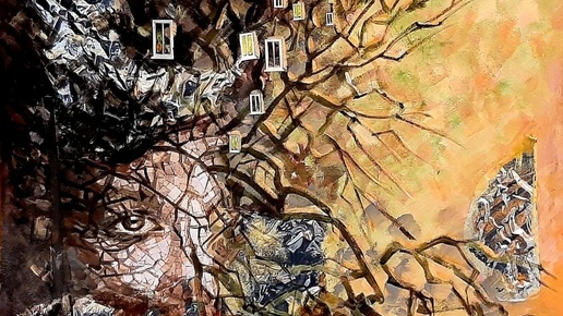 Очень интересный прием в свой небогатый опыт мне удалось заполучить после участия в марафоне художницы Евгении Войнар "Современная абстракция акрилом" Во время работы были использованы акрил, масляная пастель и почти катушка бумажного скотча +, безусловно, терпение и кропотливость...