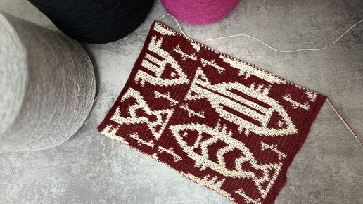 ДФЖ🤗 Что это? Это двухфонтурный жаккард, а по простому, жаккард без протяжек. Довольно сложный процесс, требующий большого внимания и сосредоточенности, но как и в любых процессах, поддается со временем «дрессировке» В любом деле, важны часы отработок… Пряжа от Нины https://t.me/your_yarn_dealer шетланд 100% шерсть, метраж 675/100 , машинка brother 965/850, встроенный узор 33, образец связан на плотности 6/6•, 51петля(по верхней игольнице), 2 рапорта🤗