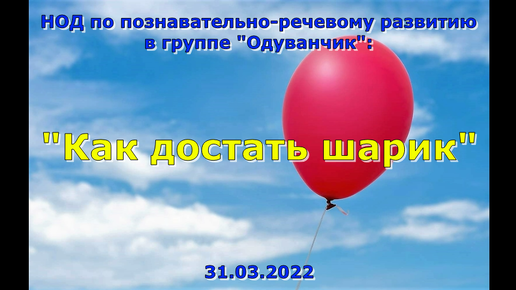 12:381,0×00:00/12:38НОД по познавательно-речевому развитию "КАК ДОСТАТЬ ШАРИК" в группе "Одуванчик", 31.03.2022 г.3 года назад
