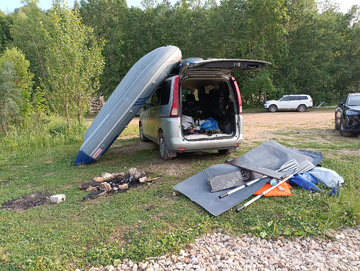 Итак, назрел вопрос о перевозке лодки в накачанном состоянии. Собирался в отпуск и как-то не хотелось возиться каждый раз с процедурой укладывания/раскладывания, сдувания/надувания лодки, темболее пайольной. Просмотрел кучу видео на ютубе, почитал кучу форумов и выбрал для себя приемлемый вариант. Так как поперечины были приобретены давно, то осталось их дополнить продольными ложементами под баллоны лодки. Для этого я выбрал доску 200×50 мм длиной 2800 мм. Распилил её вдоль. Получились две доски шириной 100 мм...