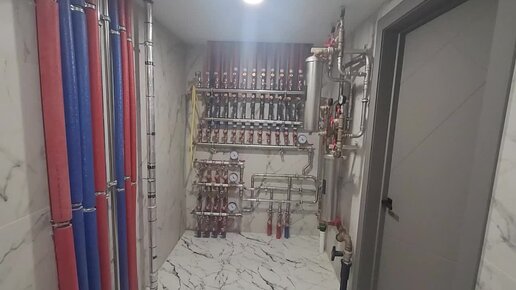 Конкурс «Лучший узел ввода или сантехники в квартире» Работа №2 Квартира, тепловой узел навьен, полная переделка коммуникаций от застройщика. Выштробили и сделали самодельные ниши под коллектора. Паралельно стоит обратить внимание на работу плиточника...