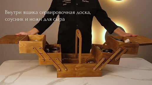 Макс.Кейс - пора вас познакомить с нашим новым подарочным ящиком!🎁🧀😍 Три этажа гастрономического удовольствия – наша новинка в коллекции подарочных боксов. Ручная работа и натуральное дерево – подчеркивают статусность набора. В нижнем ярусе – место для бутылки вина или оливкового масла. Плюс кейс дополнен сервировочной доской, соусником и набором ножей для сыра...
