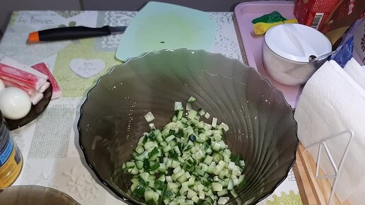 На завтрак у меня снова бутерброд с маслом и яйцом. На обед, в дополнение к супу приготовила салат с пекинской капустой. Для него взяла: 4 листа капусты, 1 маленькая морковь, немного лука, зелень, яйцо и ароматное подсолнечное масло. Все овощи нарезала, добавила яйцо и заправила маслом. На обед сырный суп, салат, кусочек кулича и брусничный морс. На полдник были помидоры с творогом. В творог добавила зелень, зубчик чеснока, заправила сметаной и выложила на дольки помидор...