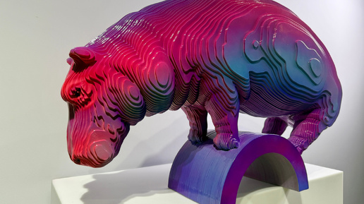 Эквилибрист Гиппи. Большой и безумно привлекательный бегемот - эквилибрист Гиппи. Гиппи решил показать как он может! Не смотря на свой вес, почти 45 кг, фигура выглядит легко и завораживает, а палитра цветов (хамелеон) раскрывает арт-объект и меняется при разных углах обзора и вариантах освещения. Гиппи может быть разным! Выполнен из алюминия толщиной 4мм 135 деталей Длина 900 мм Ширина 300 мм Высота 560мм Вес 44600 гр