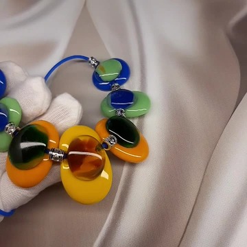 Декоративная плитка ручной работы универсальная из цветного стекла в технике фьюзинг для приклеивания на любую ровную поверхность. Подходит для декорирования дверей, окон, зеркал, кухонных фасадов, стен или в качестве бордюров.