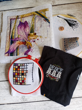 Всем привет,меня зовут Ольга и я рада видеть вас на моем канала!!! Сегодня хочу поделиться своими финишами,которые у меня получились в рамках совместного отшива ,,12 месяцев ,, который проводит Нина крестик и проходит он в группе в ВК,в течении месяца мы должны отшить и обязательно закончить один сюжет,вступила ,я туда вот с таким коллажем из сюжетов,буду вышивать три варежки,три пинкипа,и новогодние игрушки от дименшенс Участвовать я начала в со с варежек, деревянные заготовки были куплены...
