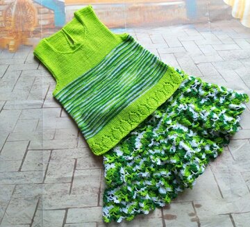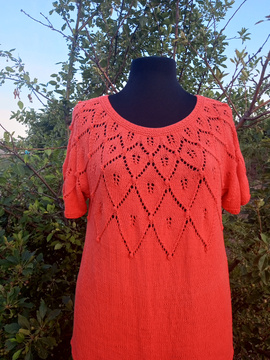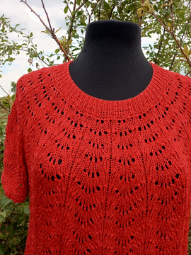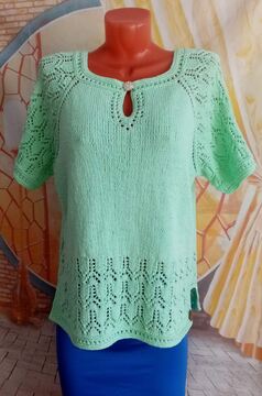 Всем привет! Так же готова маечка из пряжи от ярнарт Саммер. По этой маечке есть совместник. Что могу сказать о пряже- в работе он цепляется за спицы, носится комфортно, но цвет при стирке теряется и достаточно сильно. Я вязала из Саммер дрим, там цвет вообще потерялся, как будто изделие ношено ну лет 10 подряд. А так к телу приятная и холодит,так как в составе вискоза и хлопок. В общем изделием довольна, году с удовольствием, но к пряже есть вопросы...