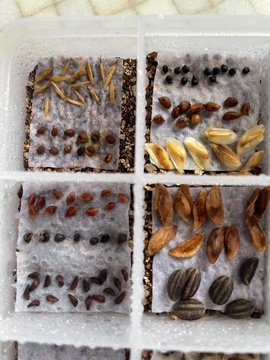 Я люблю выращивать растения из семян. Даже очень. Даже слишком. Сейчас мы живём на даче, но это совсем не значит, что могу развернуться в полную силу - нет отапливаемой теплицы или зимнего сада, условия почти как в квартире: два окна с узкими подоконниками, плюс на каждом окне 3 полки. Поэтому ужимаюсь как могу, тщательно подбираю горшки, поддоны, чтобы сэкономить каждый сантиметр и побольше уместить, но чтобы ещё и удобно было. Так и дошла до посевов семян в контейнеры для мелочей. Сею давно таким способом, лет 10...