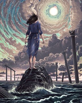 II - ВЕРХОВНАЯ ЖРИЦА. (ПАПЕССА). Олицетворяет женское начало. Фон – голубой, символ воды, Луны, энергии инь (янская только одна колонна). На каменном сером жестком троне сидит Верховная жрица, об ее универсальности говоря три предмета: тиара (головной убор) древнего Египта, на груди – христианский крест, в руках – свиток Торы. Колонны символизируют портал, ворота. Бэйт - черная – иньская – символизирует Луну или женские энергии. Йот – белая – мужская, инь – символ Бога-отца. Портал Солнце-Луна. Луна омывается водой – глубокое подсознание...