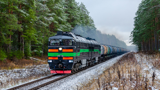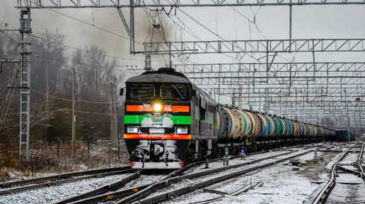 Первый Снег выпал! Первая Снежная вылозка на ЖД.🌨🌨Тепловоз 2ТЭ116-1701 с грузовым наливным составом.