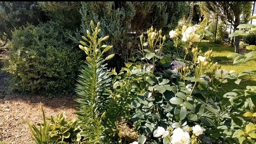 Мне очень нравятся старые сады,где растения ,переплетаясь друг с другом, образуют сказочные формы....где розы, стремясь в ширину и в высь, оплетают стены дома или растущего рядом крепкого дерева.🌳 Вся эта жизнь сада ,как портал в прошлое. Здесь будто останавливается время здесь будто островок безвременья,особая атмосфера,особое настроение. В своем саду мне хочется видеть нечто подобное. Вот один такой островок. На фото роза Букет Парфе своей плетью соприкасается с нежным фиолетовым клематисом на перголе,образуя проём,напоминающий сказочный портал...