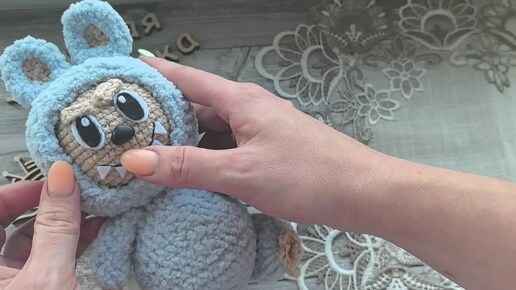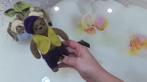 Материалы: Пряжа LaViTA MOSS - тело, АLize моnar СLASSIK - платок спицами. ТЕЛО: 1. КА 8 (8) 2. 8 пр (16) 3.(сбн, пр)*8 (24) 4.(2сбн, пр)*8 (32) 5.(3сбн, пр)*8 (40) 6-7 ( 40сбн) 8.(4 сбн, пр)*8 (48) 9-15 (48 сбн) 16. (4 сбн, уб)*8 (40) 17-24 (40 сбн) 25. (3сбн, уб)*8 (32) 26.-28 (32сбн) 29. (2сбн, уб)*8 (24) 30-31 (24 сбн) 32(сбн, уб)*8 (16) 33. 8 убавок (8) РУЧКИ: 1-14 - 5 сбн. Я вставляла в ручки проволоку ГЛАЗКИ: 1. КА 6 2. 6пр (12) 3-4. 12 сбн 5. 6 уб. Плотно набить, оставить хвостик для пришивания...