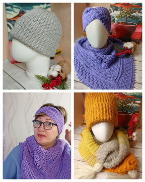 Приветствую всех, друзья! Закончила вязать комплект, который готовила в подарок внучатой племяннице. Уже и подарила, и убедилась, что всё подошло. Я переживала, что без примерки могу не попасть в размер. Мои малыши давно выросли, примерять не на кого😊 Комплект понравился и малышке (сразу помпоны начала гладить и к себе прижимать), и маме. Ну а я, конечно, очень довольна. Только идея манишки сменилась просто снудиком, потому что моих физических сил не хватило. Вязала до часу ночи накануне встречи.