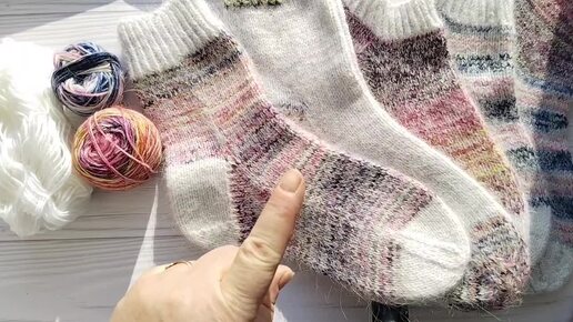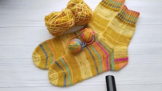 🧶✨ Новые носки из остатков пряжи ✨🧶 Привет, друзья! 🌟 Сегодня я хочу поделиться с вами своим маленьким проектом. Меня захватили остатки носочной пряжи, и я решила снова связать носки, вяжу с удовольствием и пользой для дома! 😍 У меня есть новые моточки пряжи носочного состава, но я хочу работать именно с остатками. 🧩 Отдать их некому, выкинуть жалко, хранить вечно не хочется, а вязать — очень увлекательно! Вчера «родился» мой новый носок! 🎉 В этих носках я использую два вида пряжи: Ализе Superwash comfort Socks (колор 55) и O'Yarn WAVE (колор 1105). Ещё продолжаю вязать спинку джемпера, и у меня неплохо получается. 👉 Следите за моими успехами в создании новых изделий! Буду рада вашим комментариям и вопросам.