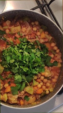 Получается очень сытное и вкусное блюдо с ярким насыщенным овощным вкусом! Ингредиенты: Приготовление: Обжарьте фарш, затем лук и морковь. Добавьте остальные нарезанные овощи, слегка обжарьте и добавьте томатную пасту и нут. Тушите до готовности овощей. Далее посолите и поперчите ваше блюдо по вкусу. Затем добавьте немного сахара, чтобы слегка уравновесить вкус, а также включите ваши любимые специи для обогащения аромата. Если у вас есть хреновина, добавьте её для придания пикантности; в случае...