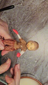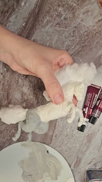 Всем привет! Я продолжаю делать Деда Мороза из ваты под ёлочку младшему сыну. Ссылки на первые две части оставлю в конце статьи. Так же будет статья с материалами. Все соберу в одну подборку. Пришло время облачать дедушку в шубку. Мне видится красная распахнутая шуба подбитая белым кудрявым мехом. Сейчас я бы сделала шубу по-другому, как делала платье. Сначала нижнюю часть одела бы, просушила и добавила верхнюю часть. Но в тот момент я решила делать шубку из цельного полотна. Совместила два куска ваты шириной примерно 22 см и высотой около 15 см...