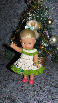 Всем доброго вечера! Продолжаем Предновогодний показ "Рождественская Сказка для кукол". В показе принимает участие: Катерина Тимофевна. ))) Это куколка Королинка, Corolle mini. Количество шарниров - 5. Рост девочки- 20 см. Куколка очень милая и девочку очень приятно держать в руках, также идеально подходит для детей и как модель для вязания. Для создания наряда "Новогодняя ёлочка" я использовала: Пряжа "Ирис" хлопок. Вязальный крючок 1.50 мм Пришивные кнопки - 2 пары Клей И блестки: снежинки, ёлочки и звёздочки...