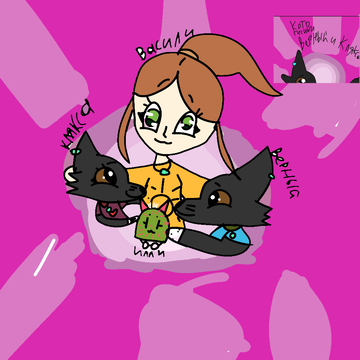 –Ррр.. Привет! Я-Клякса!Это мой старший брат Верный! Ему 16! Это Кактус Илли! Это ОНА а не он!☝🏻 А мне 10! Это наша хозяйка Васили! Ей 10. Это - ОднИ! Жаба!Мы с все КотоПсы!Любим:ПРИРОДУ,котов и НАШИХ ПОДПИСЧИКОВ Фан Капельки и Дымка!) Маскот: ожерелье