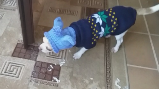 Луша и Никки. Прогулка. Никки познакомился со снегом. Попытка №1