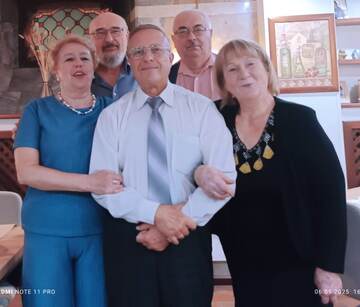 ВРУЧЕНИЕ НАГРАД ПО ИТОГАМ КОНКУРСА 7 мая в Москве, в Большом зале Центрального Дома литераторов, в торжественной обстановке, состоялись две церемонии: 1. Вручение медалей номинантам и финалистам конкурса "Георгиевская лента". 2. Награждение победителей литературного конкурса "Георгиевская лента" за 2021 - 2025 год. Во время мероприятий, в холле второго этажа и в Большом зале звучали музыка и песни военных лет. Во время регистрации участников и в дальнейшем, мне удалось сделать несколько фотографий на память об этом значительном событии: Фото 1. Регистрация участников мероприятия, продажа книг в холле 2-го этажа ЦДЛ. Фото 2. Мои входные билеты на обе церемонии. Фото 3. В Большом зале ЦДЛ перед началом первго мероприятия. Я присутствовал на церемониях и с большим интересом наблюдал за происходящим. Все были в приподнятом настроении и улыбались друг другу. На сцене Большого зала ЦДЛ награды вручал Президент Российского союза писателей Дмитрий Владимирович Кравчук. Каждого награжденного он поздравлял с приближающимся Днём Победы, желал крепкого здоровья и новых творческих успехов. Я получил из его рук медаль из симилора "Георгиевская лента. 80 лет Великой Победы" - за мои стихи о службе в правоохранительных органах и о Специальной Военной Операции. Рукопожатие Президента было крепкое, я очень волновался и был благодарен за столь высокую оценку моего скромного вклада в Литературу. После завершения всех церемоний и мероприятий, участники этого события долго не расходились, делились друг с другом своими эмоциями и воспоминаниями в холле 1-го этажа ЦДЛ. Фото 4. Я в Большом зале ЦДЛ. Фото 5. Моё Свидетельство о праве ношения медали. Фото 6. Медаль "Георгиевская лента. 80 лет Великой Победы" (из симилора, сплав жёлтого цвета).