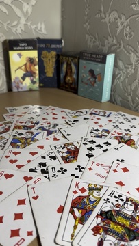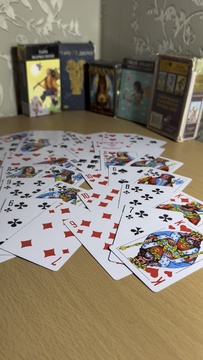 Простые и понятные гадания на игральный картах и картах таро. А так же на оракулах и рунах.
