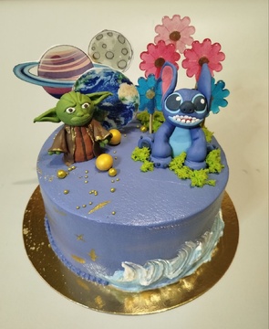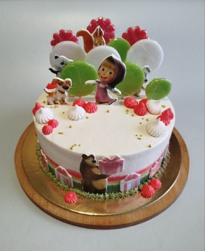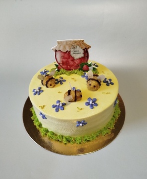 Видео приготовления этого тортика уже на канале. Часто заказчик просит сделать тортик на утро, а у вас в тортике есть мастичные украшения, то лучше мастичную фигурку положить тоже утром. Можно, допустим, сделать торт вечером, украсить его кремом, а мастичные фигурки положить уже перед тем, как отдать торт, потому что мастика может впитать в себя влагу и потечь. Есть еще способ, как ее изолировать от крема, если вдруг нет возможность доделать утром. Место касания мастичной фигурки с кремом нужно обработать растопленным какао маслом или шоколадом в цвет фигурки.