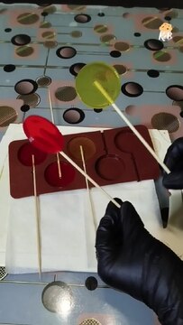 Маленький совет: карамель на палочке ставить на торт надо прямо перед тем, как отдать торт. Так как карамельки от влаги могут стать липкими. Если тортик не сразу будут есть, то я заворачиваю в пищевую пленку.