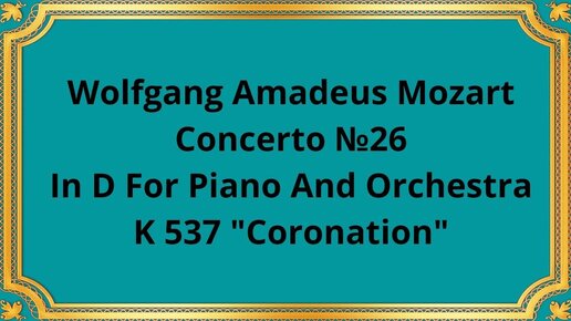 Вольфганг Амадей Моцарт Концерт №26 ре мажор для фортепиано с оркестром, K 537 «Коронация»