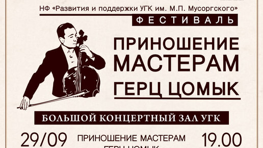 Последний, но яркий штрих музыкальной программы VIII Фестиваля современной еврейской культуры «Приношение мастерам. Посвящение Герцу Цомыку» — концерт екатеринбургского оркестра B-A-C-H и петербургского виолончелиста Михаила Славина. 29 сентября в 19.00 в Уральской государственной консерватории им. Мусоргского вы услышите: Глазунов «Песнь менестреля», «Испанская серенада», Вебер «Адажио и рондо», Элгар «Салют любви», Сен-Санс «Лебедь», Валентини соната для виолончели и фортепиано и др...