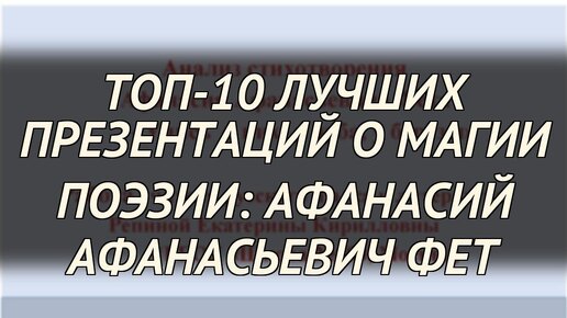 ТОП-10 лучших презентаций о магии поэзии: Афанасий Афанасьевич Фет
