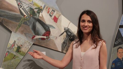 Вернисаж в Калуге: Айнура Гасанова управляет самолетом, рисует в мороз на аэродроме и приручает диких животных