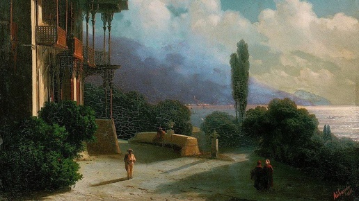 Айвазовский Иван Константинович, (1817–1900) «Окрестности Ялты ночью», 1866. Дерево, масло, 40 х 48 см Из фондов: Историко-архитектурный и художественный музей «Новый Иерусалим». Мне кажется, на картине - Ливадия, Малый (Старый) дворец Александра III...