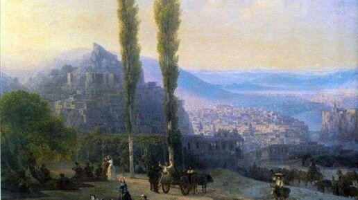 “Вид Тифлиса” – один из пейзажей Айвазовского, написанного в 1869 году. На картине изображен южный город Тифлис с уникальной для него природой. На горизонте можно увидеть прекрасные величественные горы, создающие в пейзаже особый колорит. Небо торжественно и грандиозно, оно будто сливается с силуэтом гор. Здесь преобладают насыщенно-зеленые и золотисто-желтые оттенки. Картина представляет собой городской пейзаж, и вдали виднеются очертания знаний. Благодаря этому мы можем представить, как выглядел Тифлис во время написания картины...
