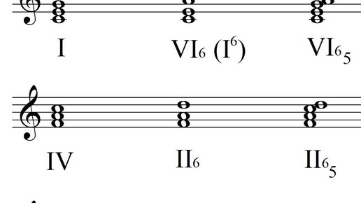 У каждого из трезвучий главных ступеней, I IV и V, есть его более мягко звучащий вариант – аккорд, в котором квинта от баса заменена секстой. Шестой секстаккорд таким образом можно назвать тоникой с секстой, третий секст – доминантой с секстой, а второй секстаккорд можно было бы называть субдоминантой с секстой, хотя его всё же традиционно называют вторым секстаккордом. Примечательно, что контекст наиболее широкого употребления для каждого из аккордов разный:...