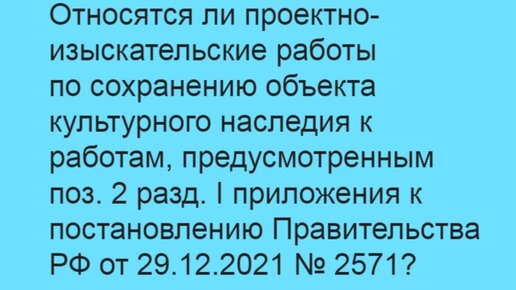 Относятся ли проектно-изыскательские работы по сохранению объекта культурного наследия к работам, предусмотренным поз. 2 разд. I приложения к постановлению Правительства РФ от 29.12.2021 № 2571?