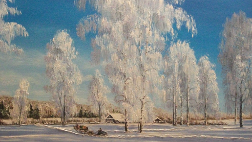 Художник Александр Горбик назвал свою картину строками из стихотворения, стихотворения настолько знаменитого, что когда мы видим зимнюю берёзу в серебряных кружевах инея, стихотворные строки непременно возникают в сознании. А простыми словами говорить не хочется. Белая берёза Под моим окном Принакрылась снегом, Точно серебром. На пушистых ветках Снежною каймой Распустились кисти Белой бахромой. И стоит берёза В сонной тишине, И горят снежинки В золотом огне. А заря, лениво Обходя кругом, Обсыпает ветки Новым серебром...