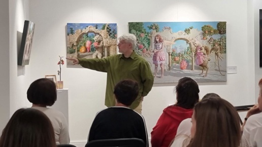 Благодарим Александра Саидова и гостей за встречу Картины Александра Саидова полны аллегорий, метафор и размышлений. Их можно долго рассматривать и фантазировать. Можно додумать вкус перезрелых райских плодов, аромат ярких цветов из райского сада. Можно почувствовать влажность тумана и росы на замысловатых листьях, придуманных художником. Можно услышать широкий диапазон звуков - шелест листвы и крик птицы. А может быть там и абсолютная тишина?! "Лучший учитель - собственные глаза" "Все что мы [художники] придумываем, мы когда либо уже видели и сочетаем то, что в жизни не сочетается...