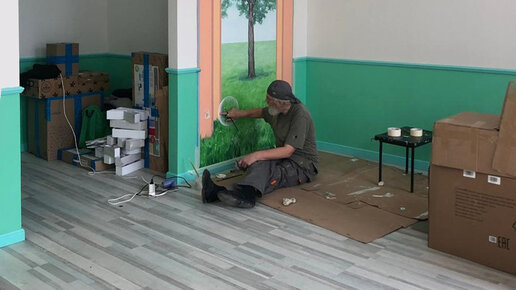Обманка или Тромплей (от французского trompe-l'œil, «обман зрения») - это прием с целью создания оптической иллюзии, как будто он нарисован в пространстве, а на самом деле, в одной плоскости. Этот прием использовался со времен Древней Греции и Древнего Рима и актуален сегодня. При помощи тромплея можно создать эффект безграничного пространства и не обязательно использовать роспись на стене, можно сделать печать на фреске или обоях. Рисунок на стене выполнен художником Алексем Ефанкиным, г. Москва...