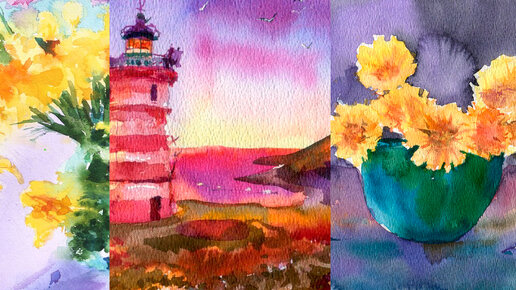 В эти пасмурные осенние дни хочется больше красок, больше цвета. На этот раз публикую осеннюю серию работ выполненных акварелью, здесь и пейзаж и натюрморты, цветы. Рисовал в основном по мокрому, тоесть скачивал бумагу водой с двух сторон...