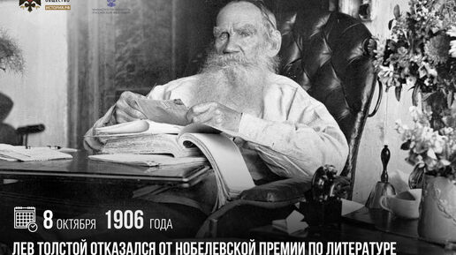 8 октября 1906 года Лев Толстой отказался от Нобелевской премии по литературе