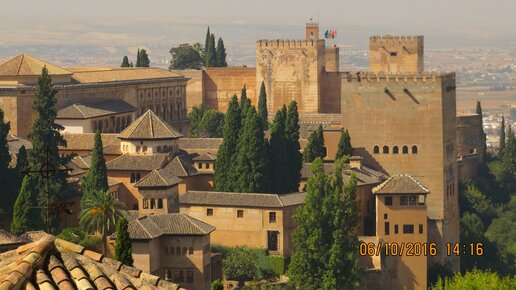 Пусть уже будет «Альгамбра». А то у арабов она была «Аль-хамбра», а на современном кастильском (общегосударственном испанском) теперь вообще «Альамбра». Где – с этим всё ясно. Гранада, Андалусия, Испания. А вот что всё-таки такое Альгамбра ? Это замок? Это королевский дворец? Это дворец мусульманских эмиров? Это сад? И то, и другое, и третье, и четвёртое. Всё вместе. И ещё много чего. Она довольно-таки неслабую территорию занимает, больше километра в длину, места на всё хватает. Уже рассказывал о том, как полезно забронировать посещение Альгамбры заранее...